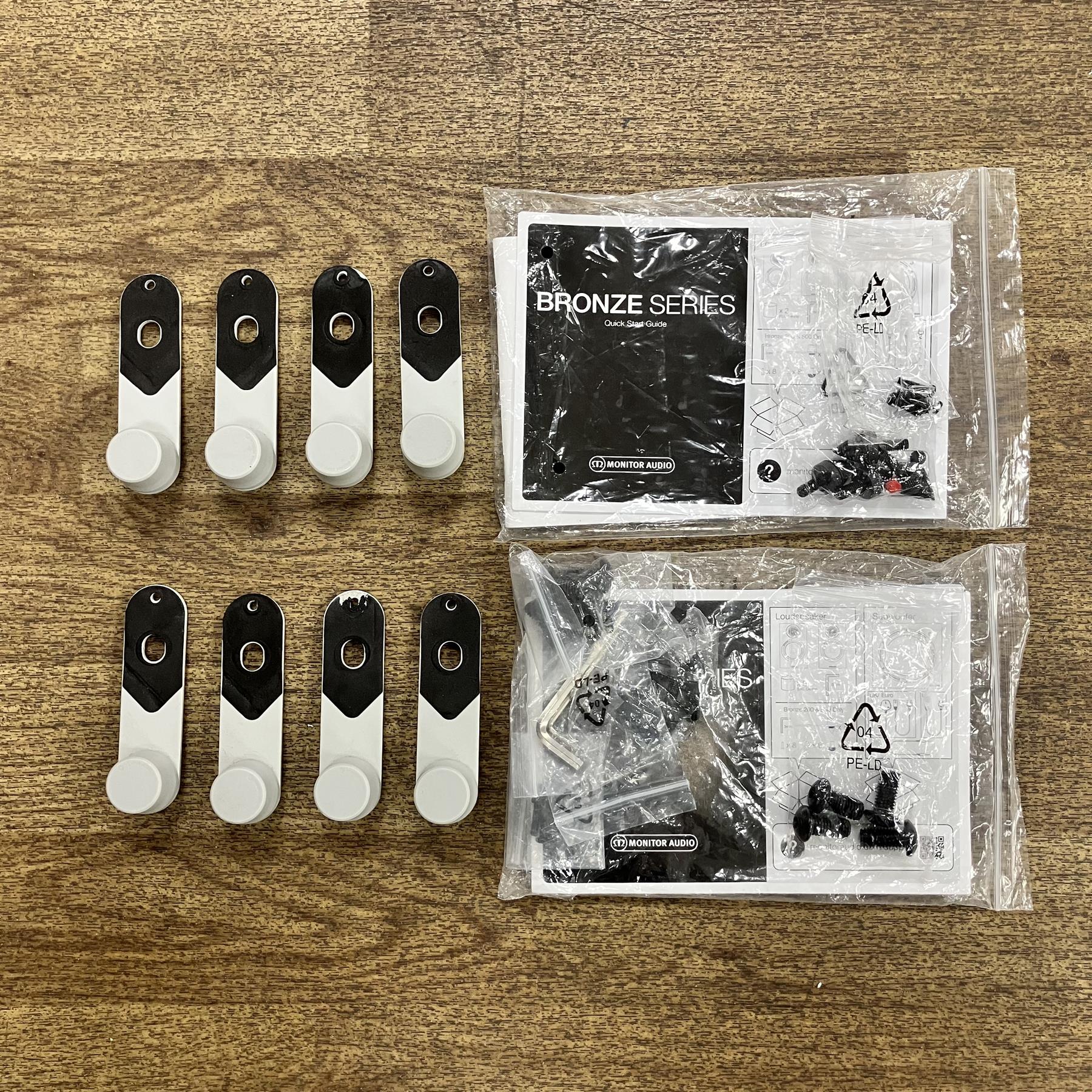 They come in the original box and pcakging, with Floor Spikes & Feet, Speaker Grilles & Manuals included.