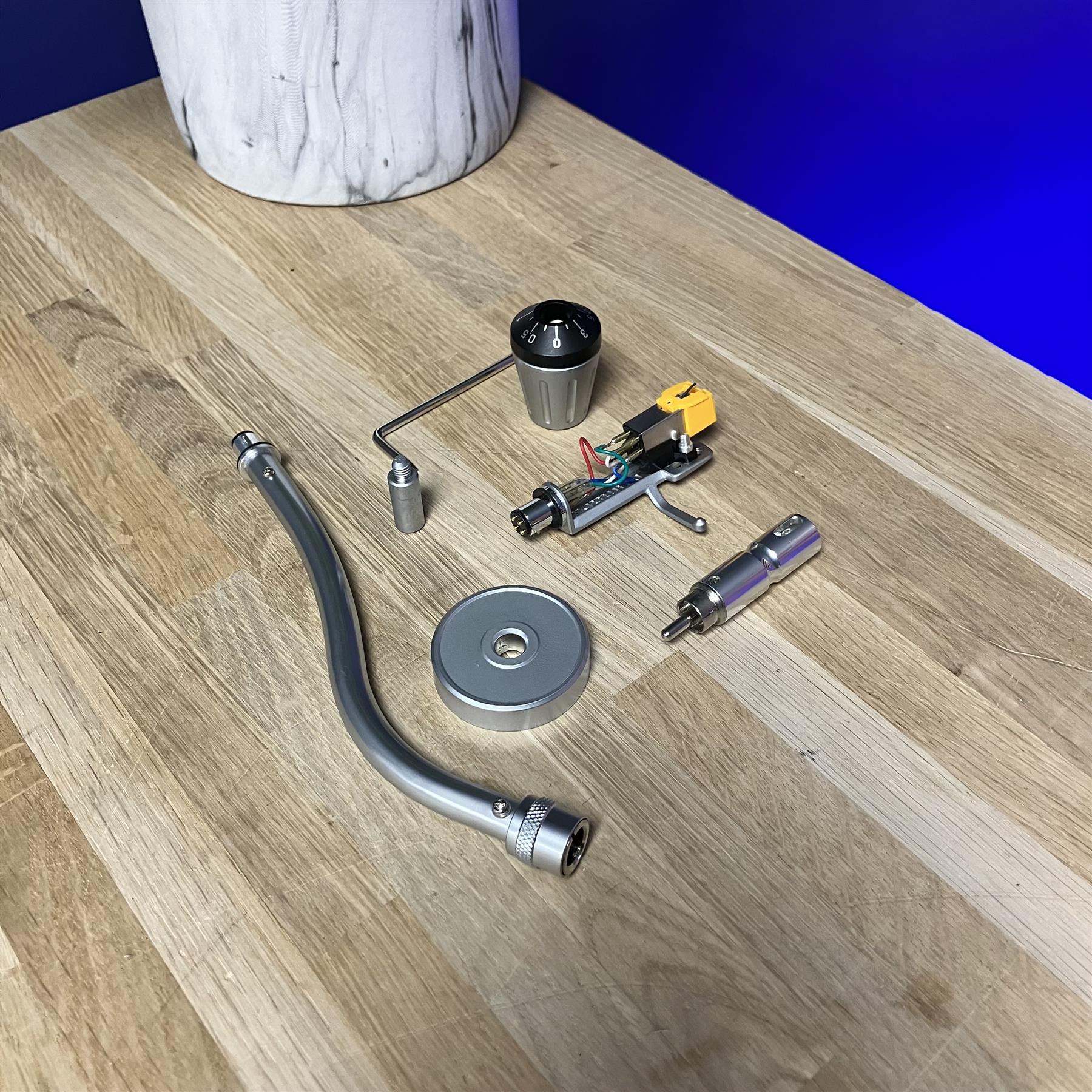 It has been professionally repackaged to ensure safe delivery, with Power Cable, Phono Lead, Aux Weight, Counter Weight, S & Straight Tonearms, Headshell & Audio Technica Cartridge.