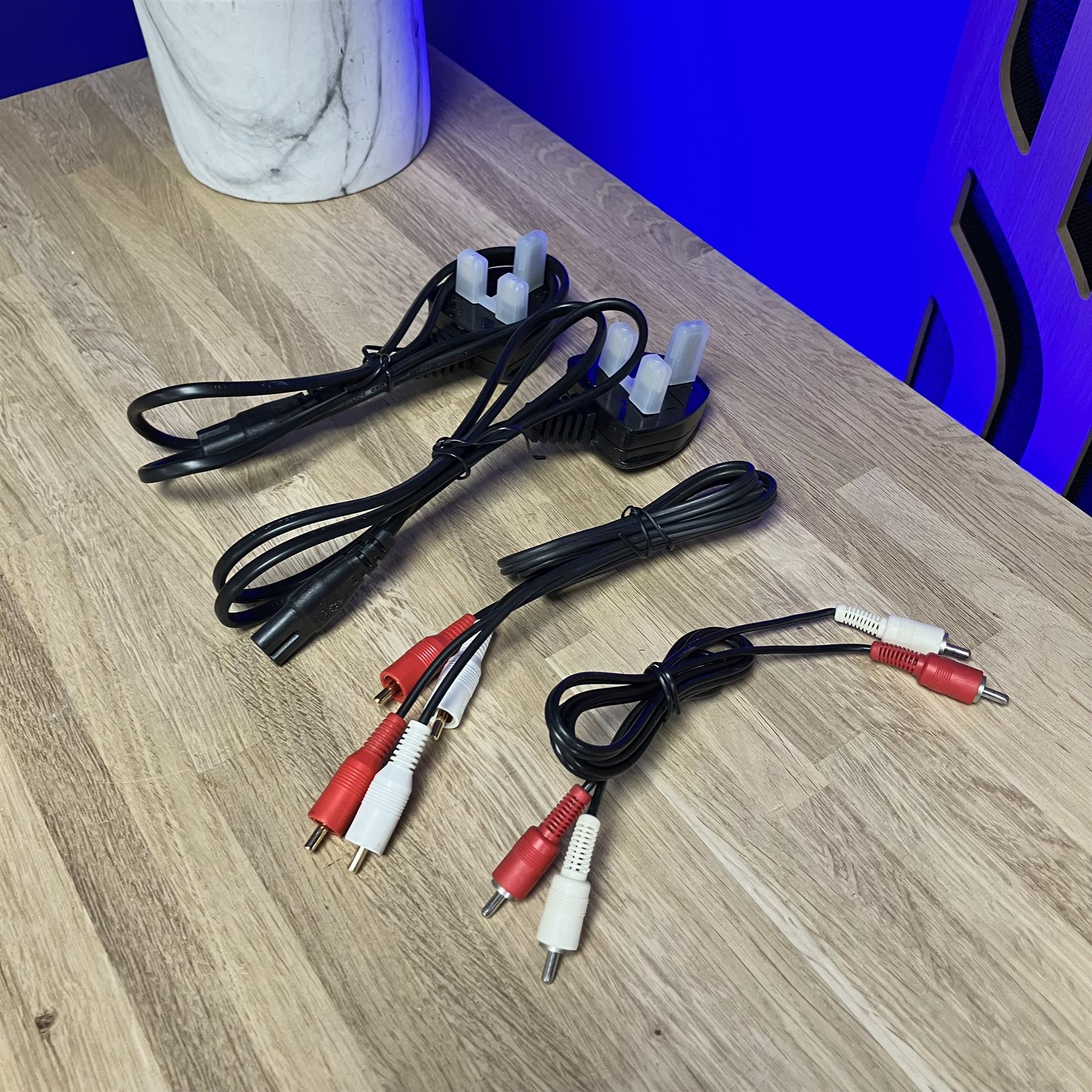 They have been professionally repackaged to ensure safe delivery with 2x Power Cable & 2x Phono Lead included.