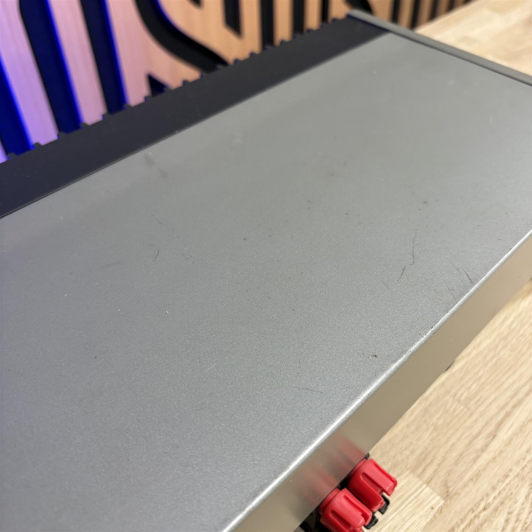 The cosmetic condition is average. There are some scratches to the top and sides of the amplifier. The feet are in poor condition. Please see the condition in the images.